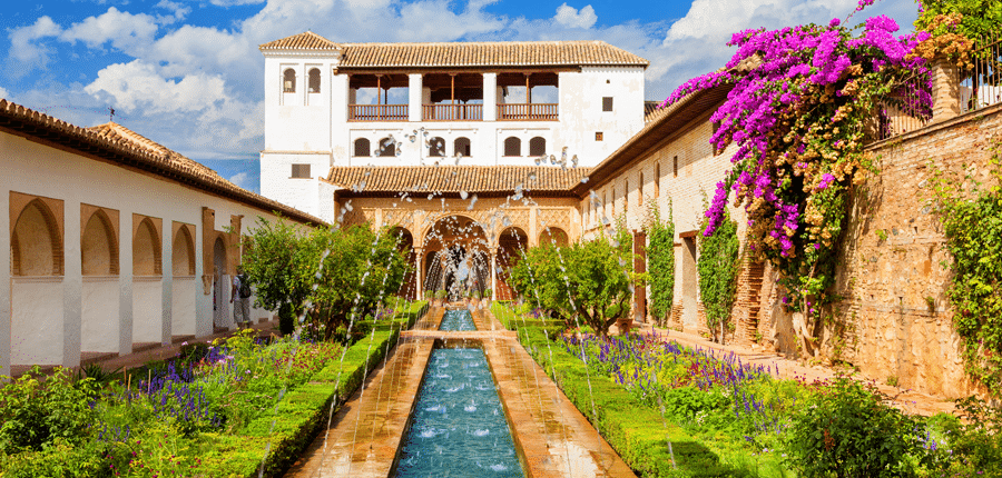 4ème jour : Route vers Grenade pour la visite guidée de l’incroyable citadelle de l’Alhambra (sous réserve de disponibilités), paradis terrestre où régnèrent les rois maures de la dynastie Nasride. Transfert vers les contreforts de Sierra Nevada pour le déjeuner-paëlla où on domine la plaine de Grenade. Promenade dans l’Albayzin. Cet ancien quartier maure aux ruelles blanches et petites placettes offre d’innombrables points de vue sur la citadelle de l’Alhambra et la Sierra Nevada. Temps libre dans l’ancien souk, le quartier de l’Alcaicería. Retour à l’hôtel pour dîner et nuit.