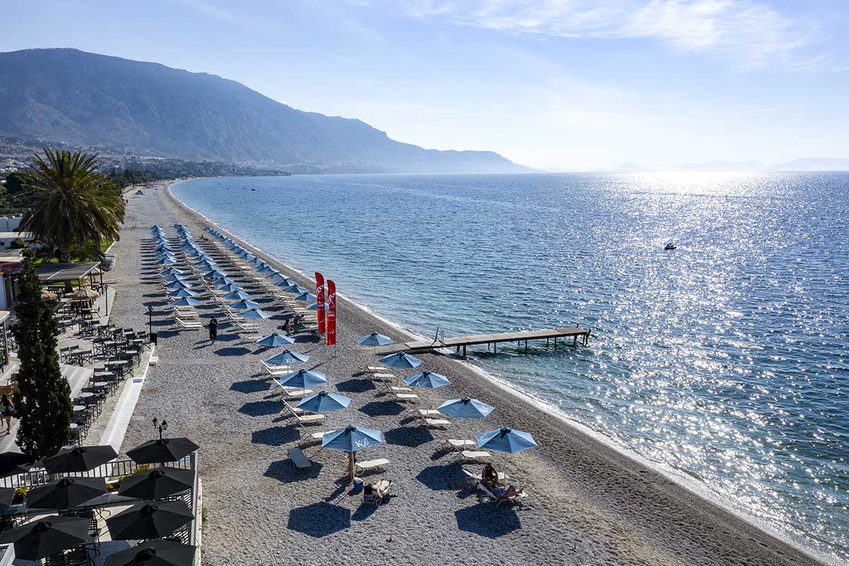 Situé entre Athènes, Corinthe et Mycènes, le club offre un emplacement idéal pour alterner découverte de la Grèce antique et détente face à la Méditerranée. À 45 minutes d’Athènes, ce club à taille humaine propose 253 chambres, dont 140 réservées au Club Lookéa, réparties dans des bungalows ou de petits bâtiments d’un étage. Chaque chambre dispose d’un balcon ou d’une terrasse, de la climatisation, d’une TV, d’un téléphone, d’un coffre-fort (payant) et d’une salle de bains équipée avec douche ou baignoire et sèche-cheveux.