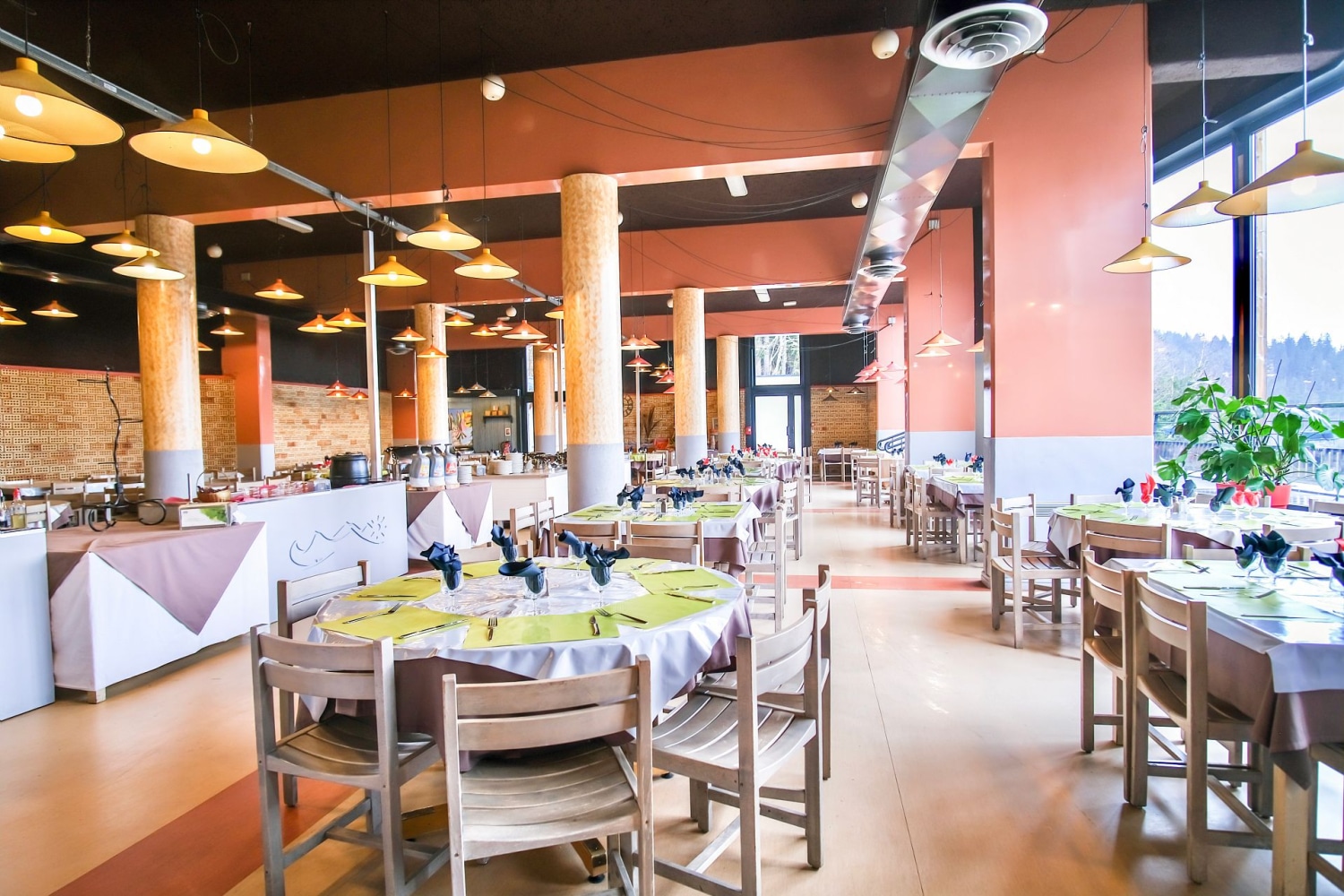 RESTAURATION : Service au buffet, vin inclus : choix d’entrées, 3 à 4 plats chauds au choix, dont un végétarien, au moins 3 spécialités régionales dans la semaine. Buffet de fromage et desserts. Possibilités de panier repas. Horaire du restaurant 7h30-09h30 (puis petit-déjeuner express au bar jusqu’à 11h00) / 12h00-13h30 / 19h00-20h30.