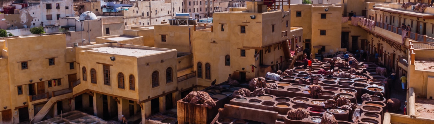 4ème jour : Matinée dédiée à la découverte de Fès. Visite de Fès-El-Bali, la ville ancienne aux 9400 ruelles et bazars animés, regorgeant de mosquées, médersas, caravansérails et échoppes d’artisans. Découverte de la médersa Bou Inania et de la place En-Nejjarine, avec sa belle fontaine ornée de zelliges, ainsi que du musée Nejjarine, installé dans un caravansérail du XVIIIème siècle. Déjeuner dans la Médina. L’après-midi, visite de Fès-El-Jedid, quartier connu pour sa porte monumentale décorée de faïence bleue et verte, Bab Boujeloud. Promenade dans les souks authentiques, avec arrêt dans le quartier des tanneurs. Dîner et nuit à l’hôtel.