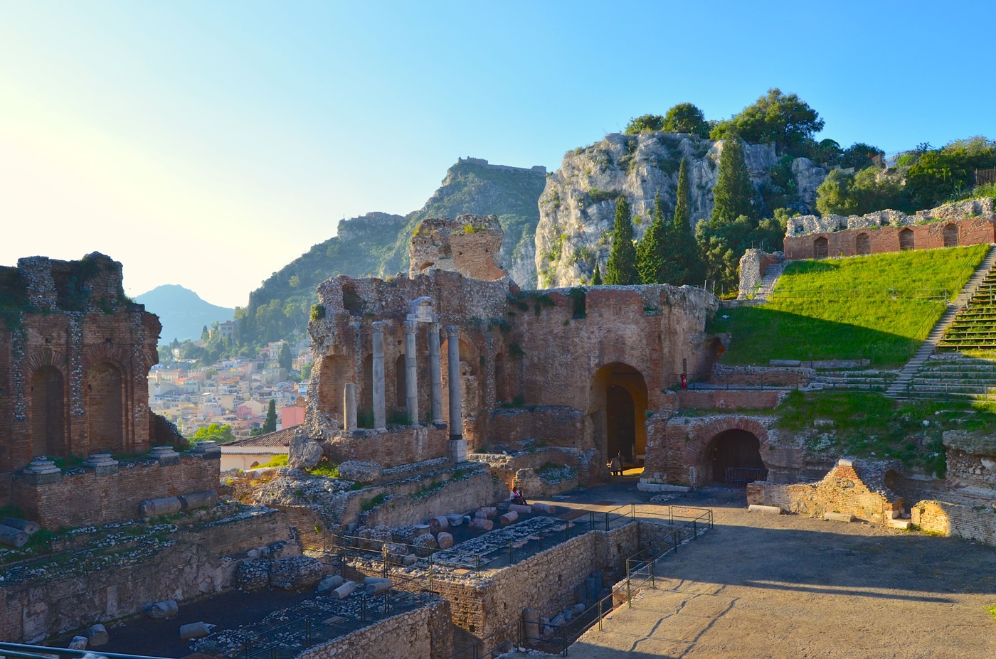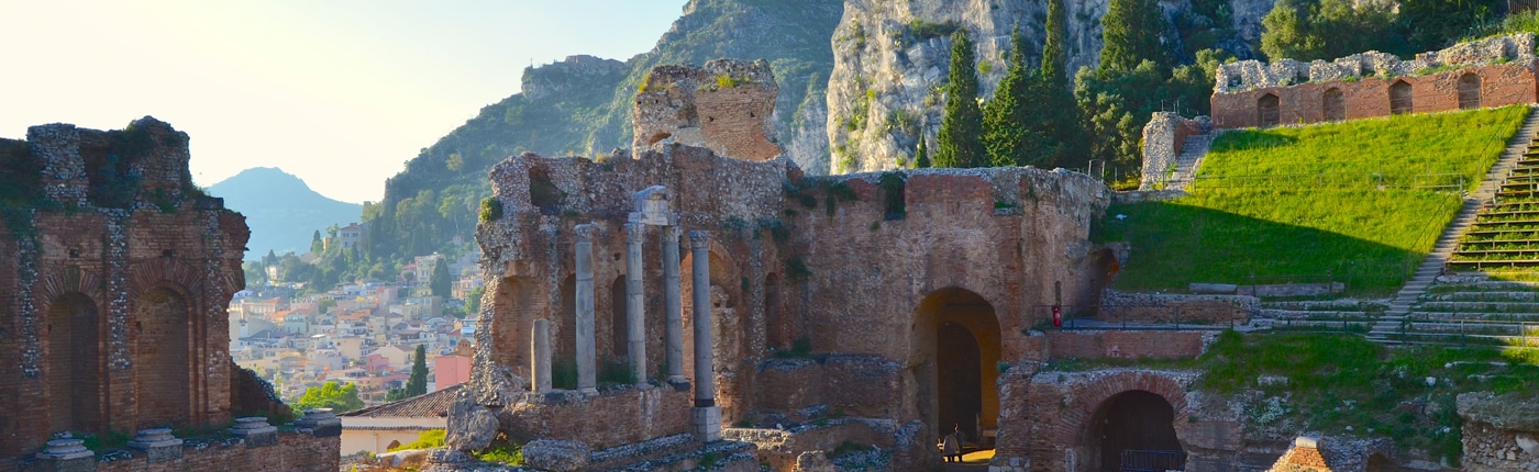 Journée d’excursion au Mont Etna et Taormine(1). Le plus grand volcan actif d’Europe. Montez à environ 1950 m d’altitude pour découvrir la zone du cratère Silvestri. De là, admirez un superbe point de vue du golfe de Catane. Puis route vers Taormine. Perchée sur une terrasse surplombant la mer, Taormine incarne la beauté légendaire de la Sicile. Visite entre autres de son spectaculaire théâtre antique.