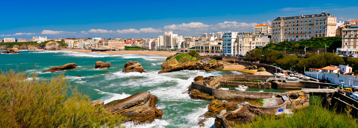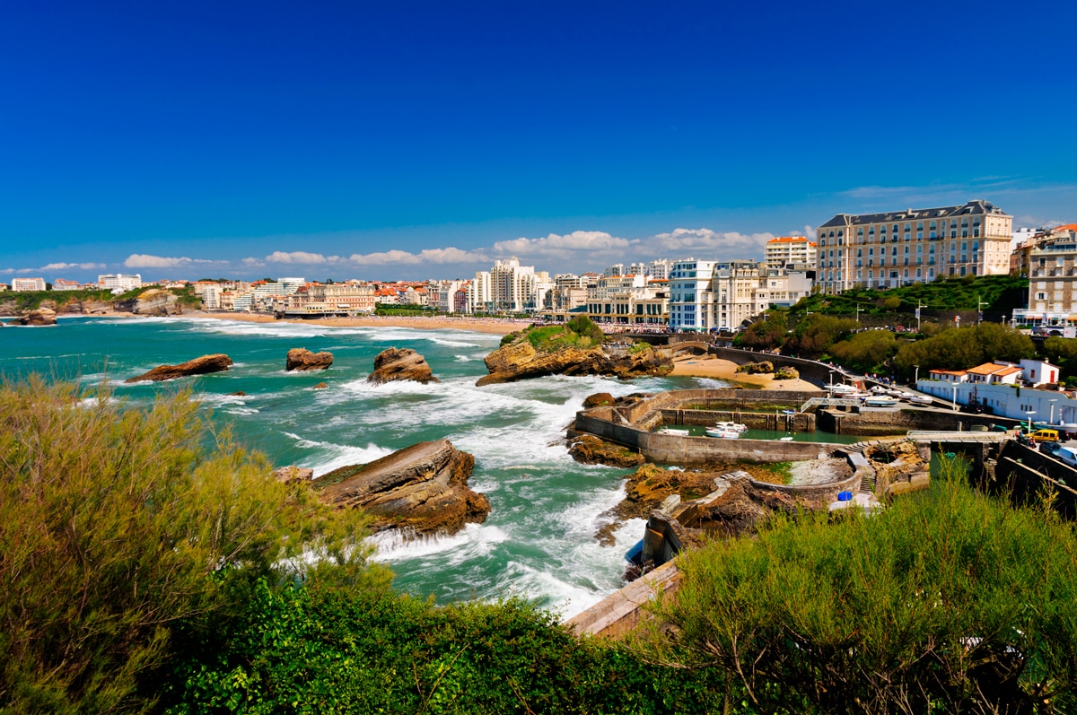 4ème jour : Route vers Saint-Jean-de-Luz, où vous visitez l’église Saint-Jean-Baptiste, témoin de la cérémonie de mariage du roi Louis XIV et Marie Thérèse de l’Infante en 1660. En flânant dans les rues pavées bordées de magnifiques maisons jadis habitées par les corsaires, vous admirez la splendide baie ourlée de plages et les trois digues qui protègent la ville. Déjeuner. Puis départ pour Biarritz, paradis des surfeurs, où vous découvrez la plage des rois, son phare, et empruntez le pont de fer qui mène au Rocher de la Vierge. Visite commentée en petit train le long de la splendide côte de Biarritz, dans une réplique du chemin de fer des années 1850. Dîner, soirée animée et nuit.